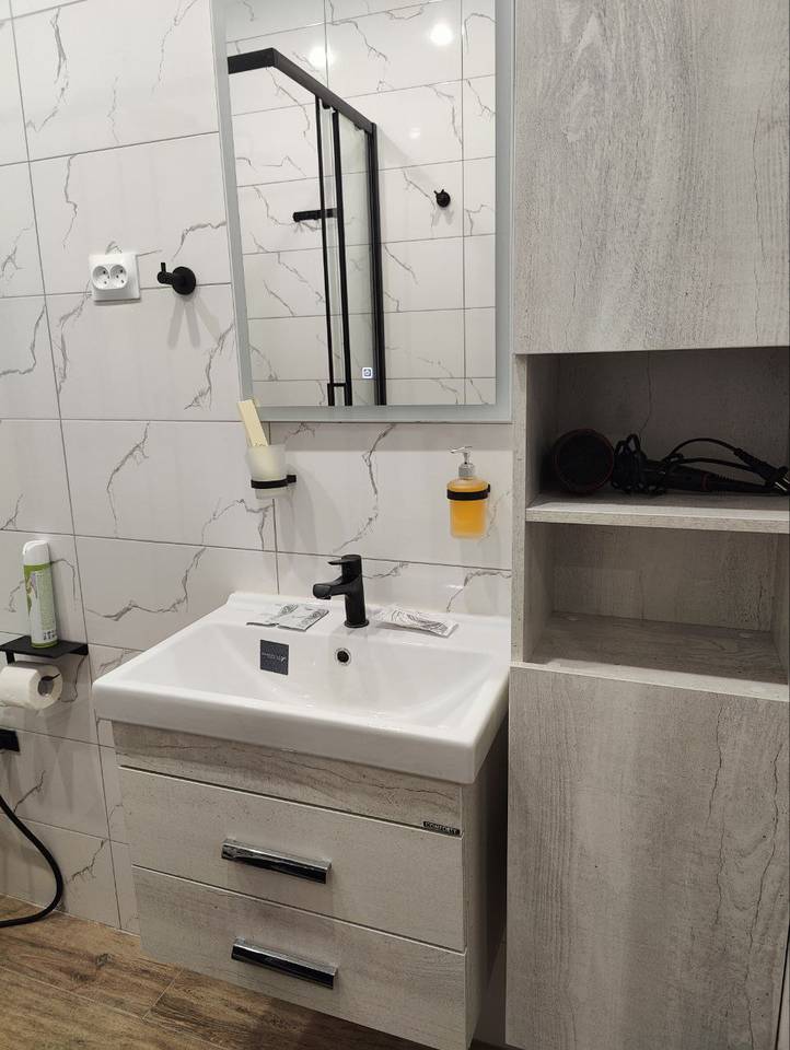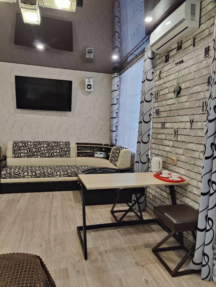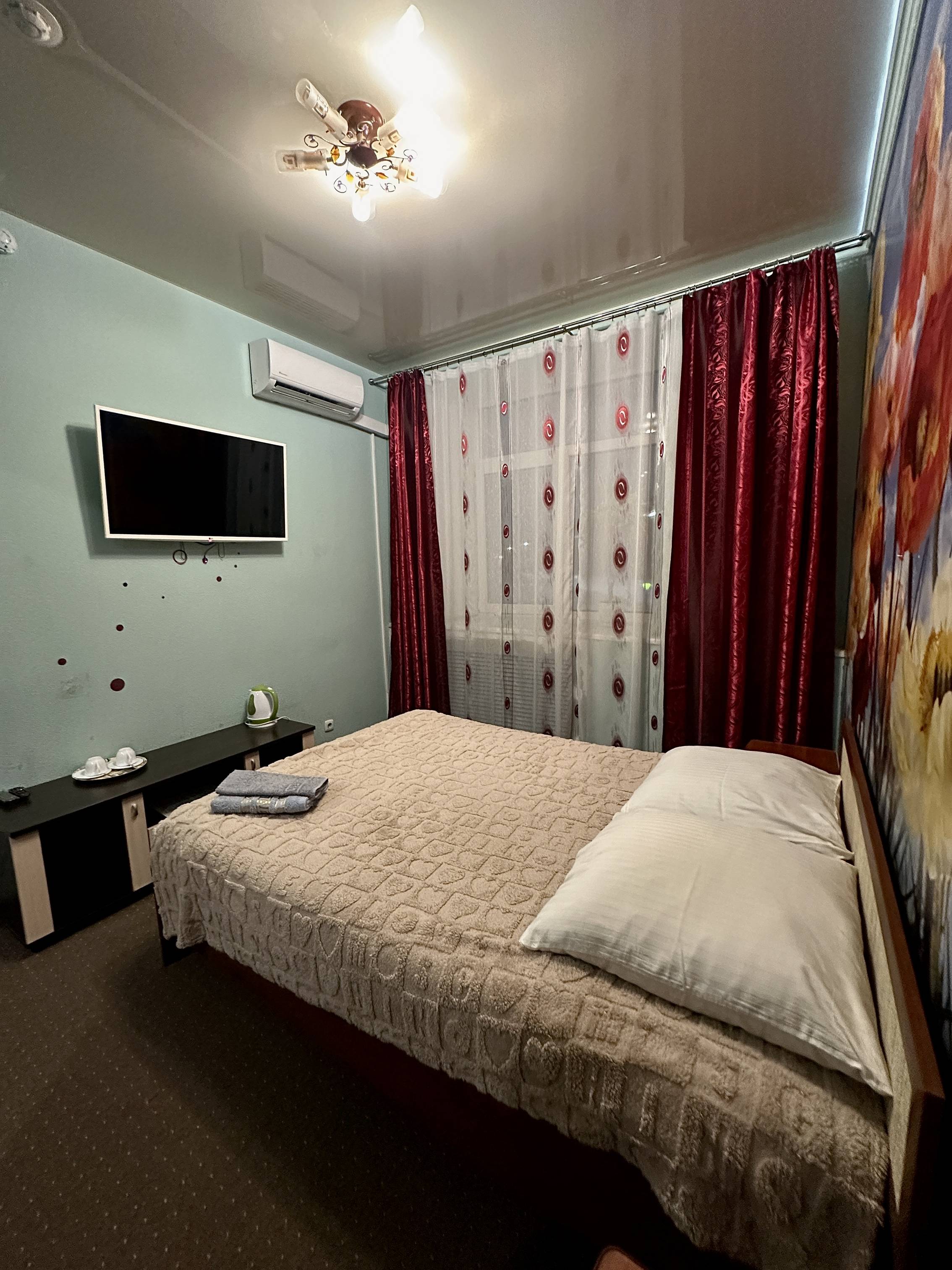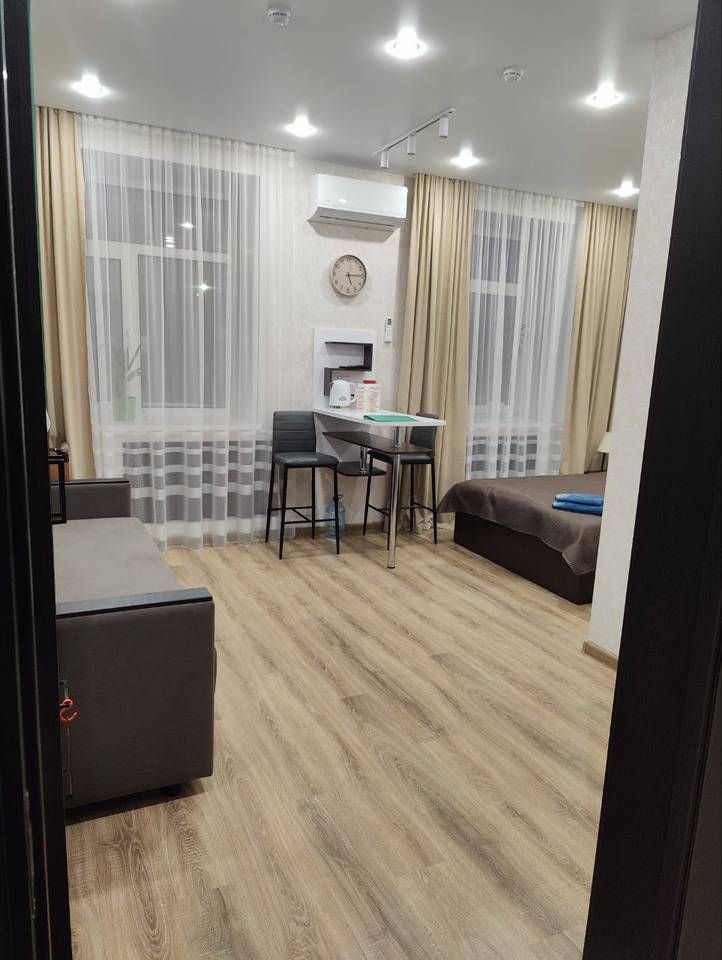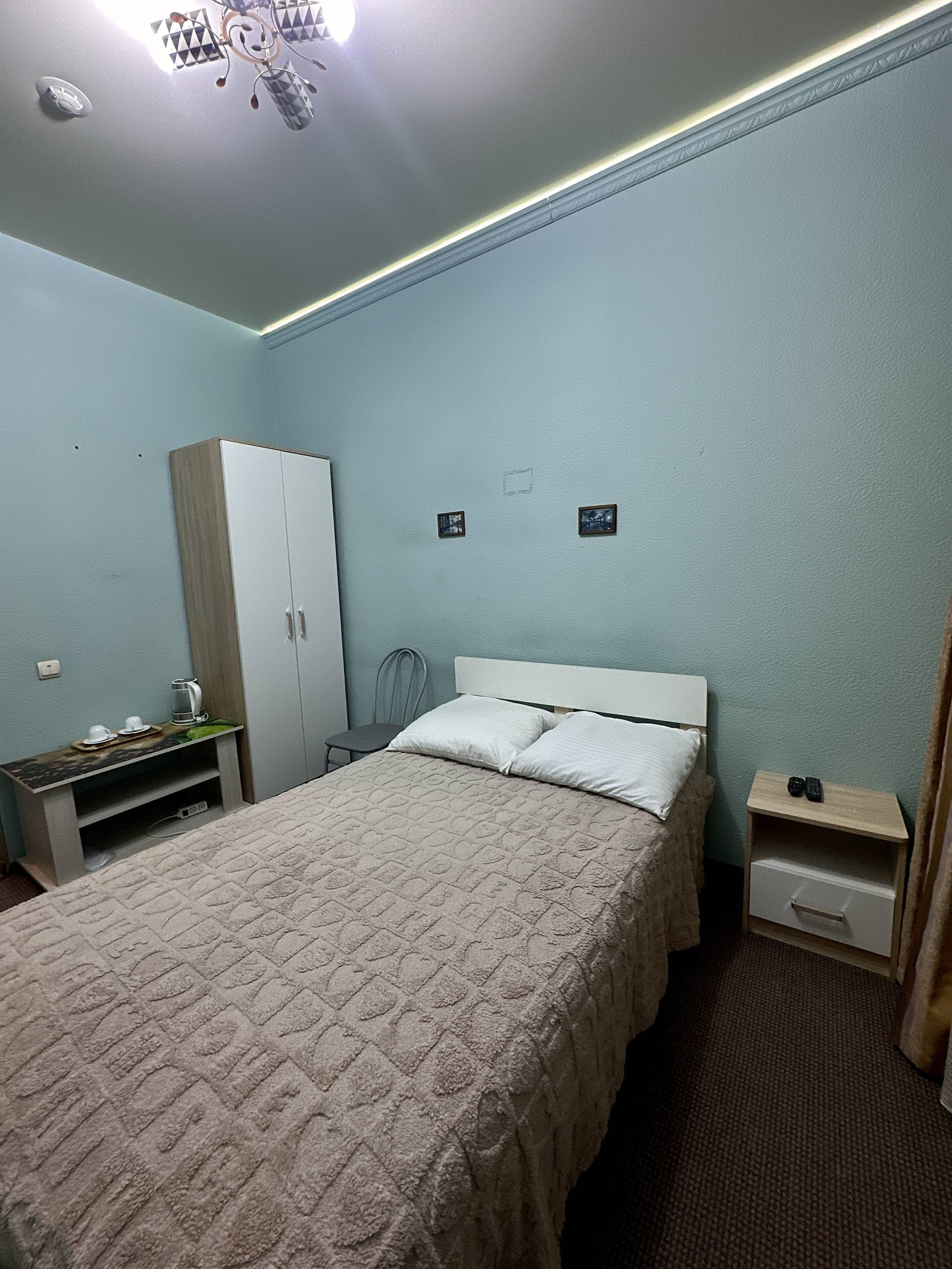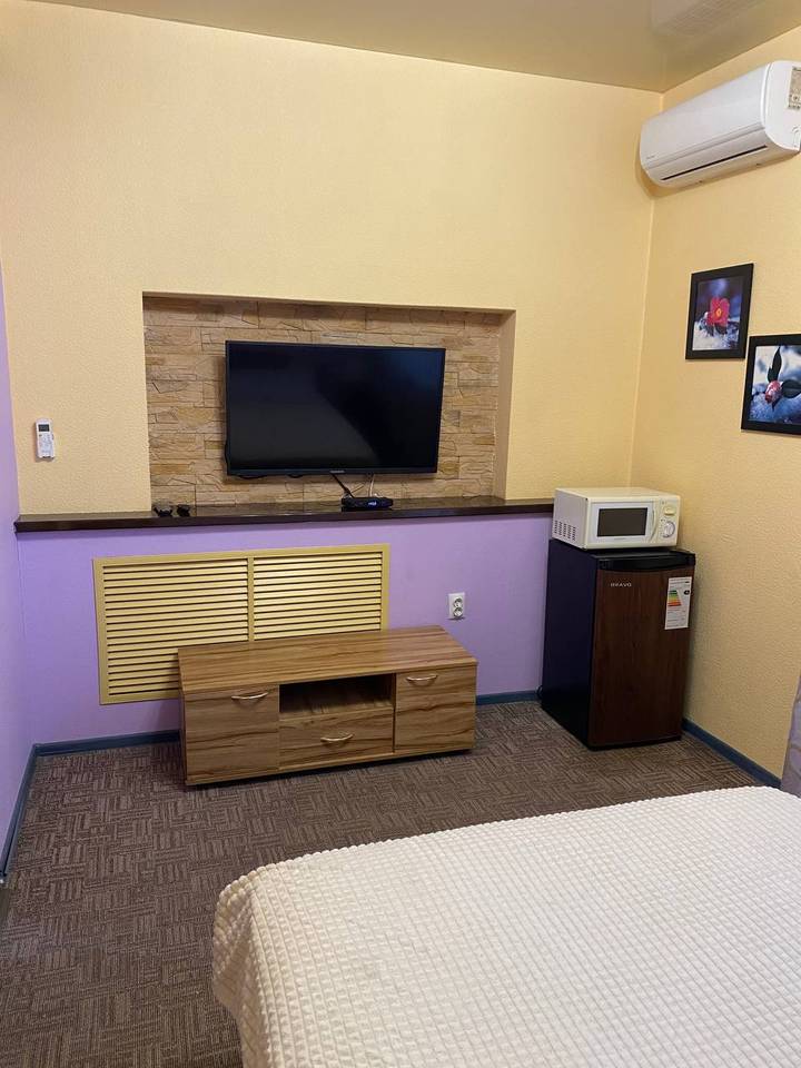 двуспальная кровать, спутниковое телевидение, микроволновая печь, кондиционер, холодильник, чайник, душевое ограждение, гигиенический душ, туалет, стиральная машина, фен. Площадь номера 23 м2. Категория: однокомнатный, одноместный, стандартный. Стоимость: от 5 000 руб. в сутки. Завтрак включен |
