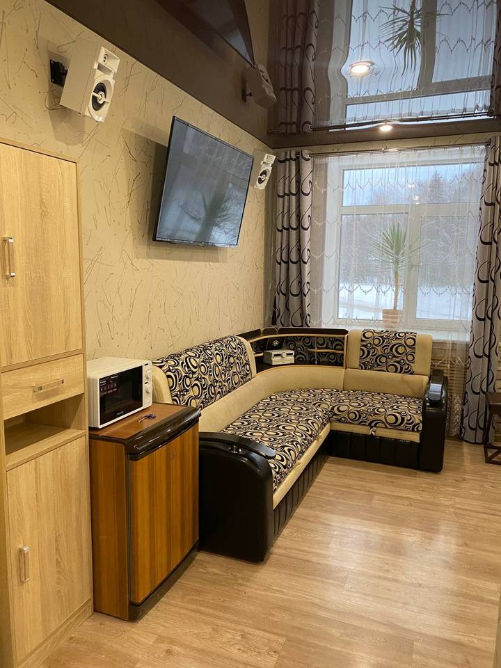 1,5 спальная кровать, спутниковое телевидение, чайник, душевая кабина, туалет, стиральная машина, фен. Площадь номера 16 м2. Категория: однокомнатный, одноместный, стандартный. Стоимость: от 4 100 руб. в сутки. Завтрак включен |