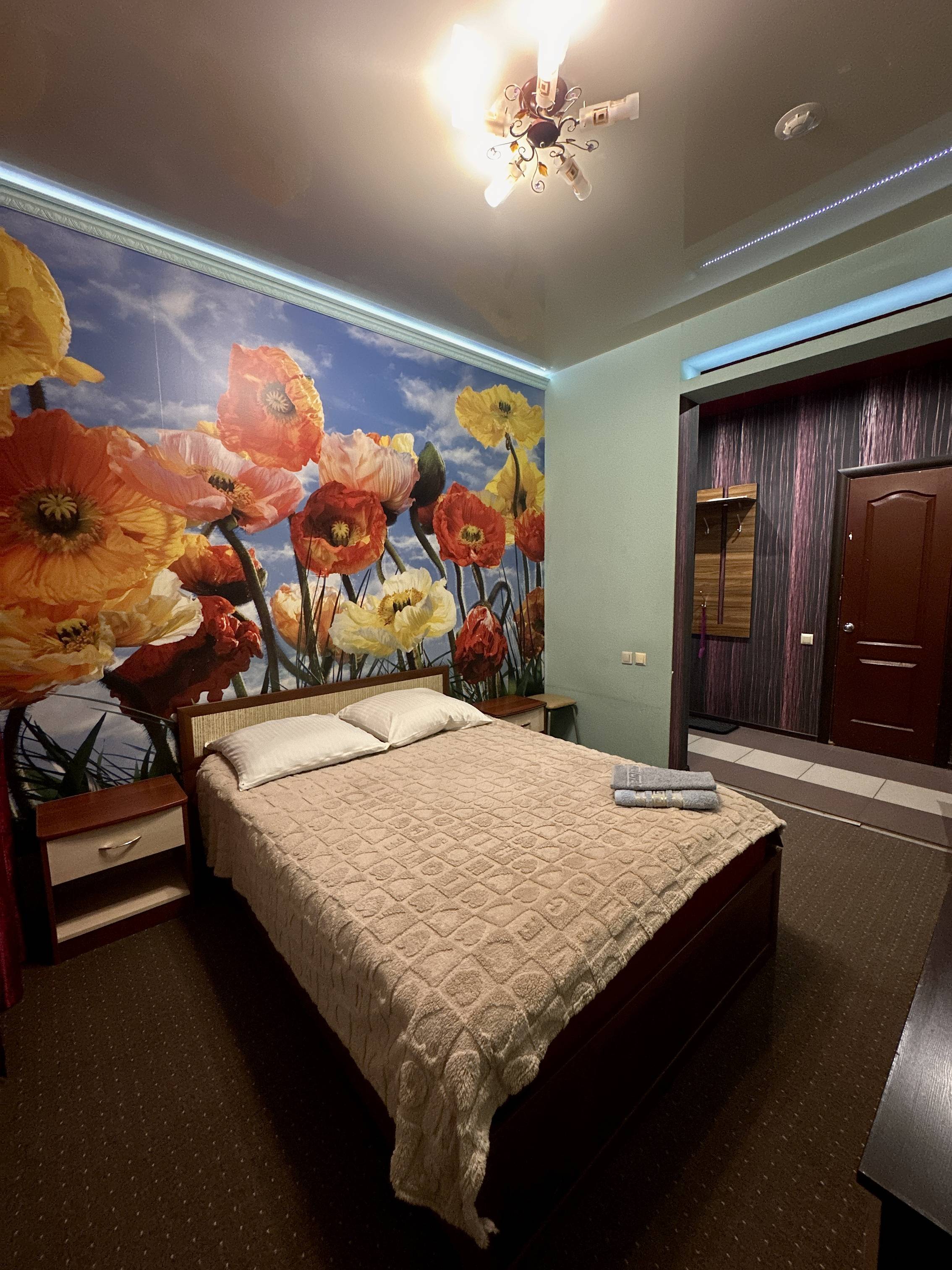 двуспальная кровать, спутниковое телевидение, кондиционер, холодильник, микроволновая печь, чайник, душевое ограждение, гигиенический душ, туалет, стиральная машина, фен. Площадь номера 20 м2. Категория: однокомнатный, одноместный, стандартный. Стоимость: от 5 000 руб. в сутки. Завтрак включен |