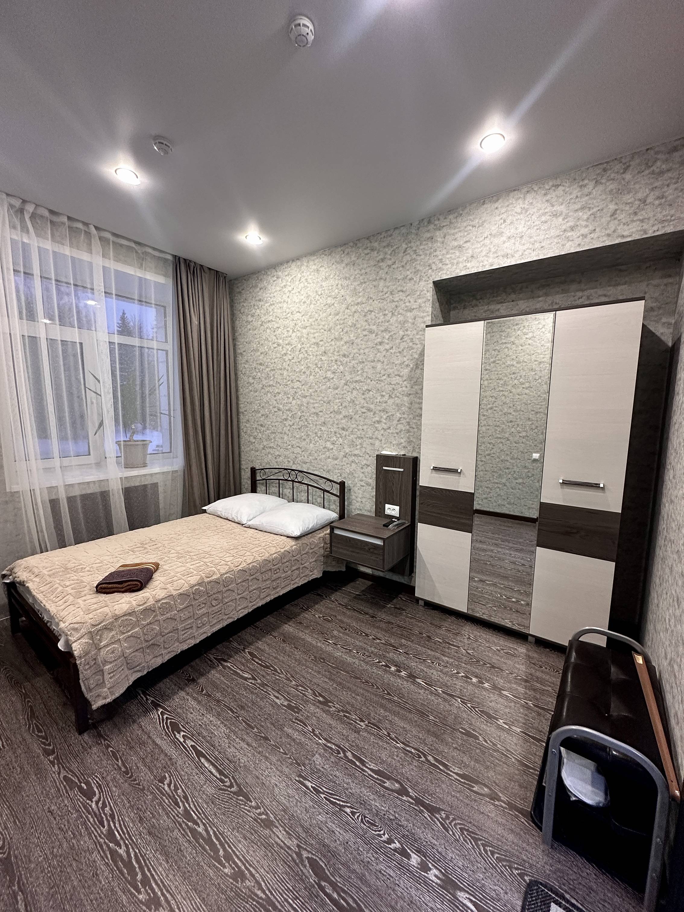 односпальная кровать, спутниковое телевидение, чайник, душ, туалет, сауна, фен. Площадь номера 17 м2. Категория: однокомнатный, одноместный, стандартный. Стоимость: от 3 600 руб. в сутки. Завтрак включен |