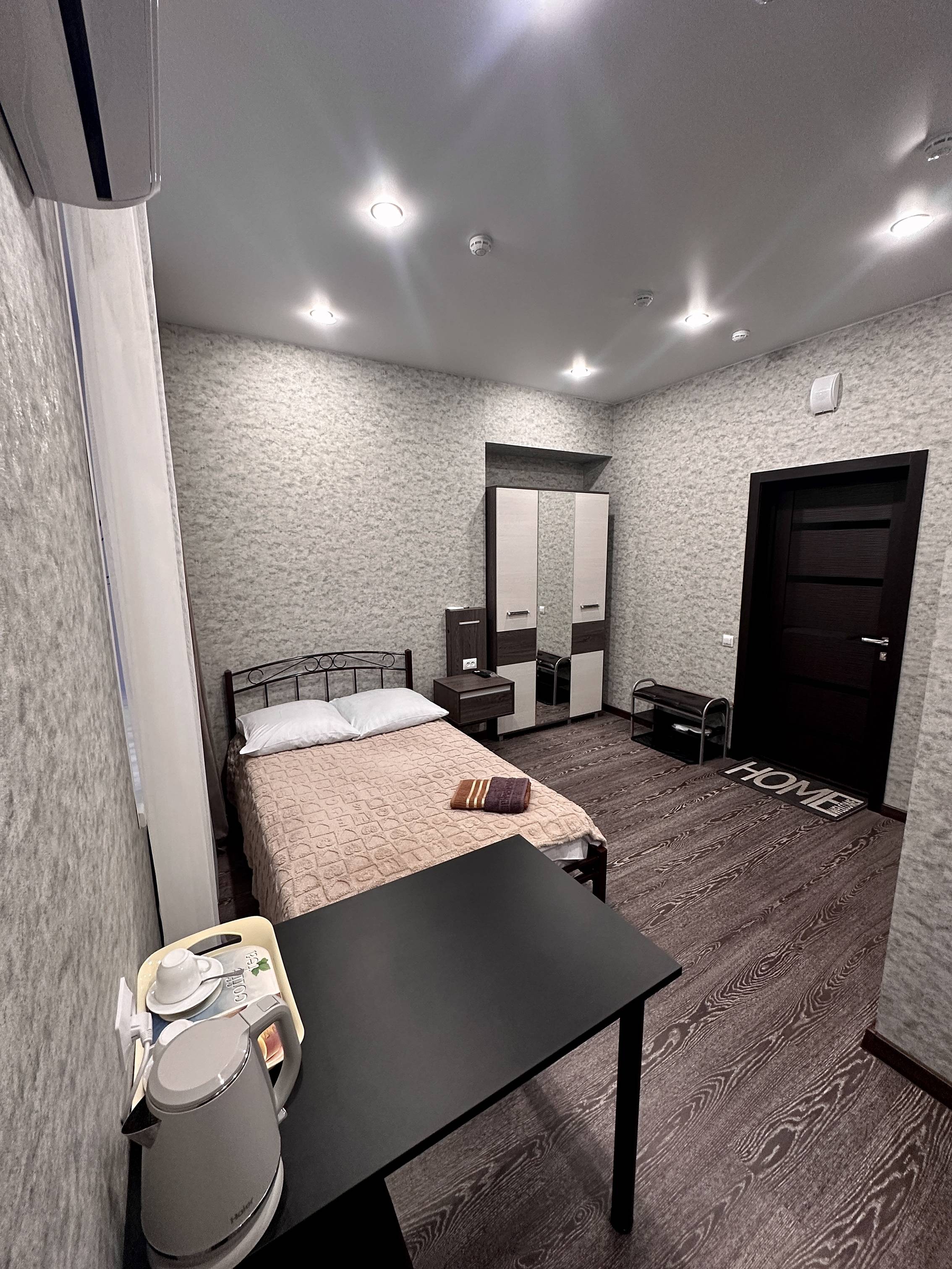 В номерах – все, что требуется для комфортного отдыха и продуктивной работы: удобные кровати, функциональные рабочие зоны, LED телевизоры, кондиционеры. Высокоскоростной WiFi, спутниковое телевидение и телефон с междугородной связью.